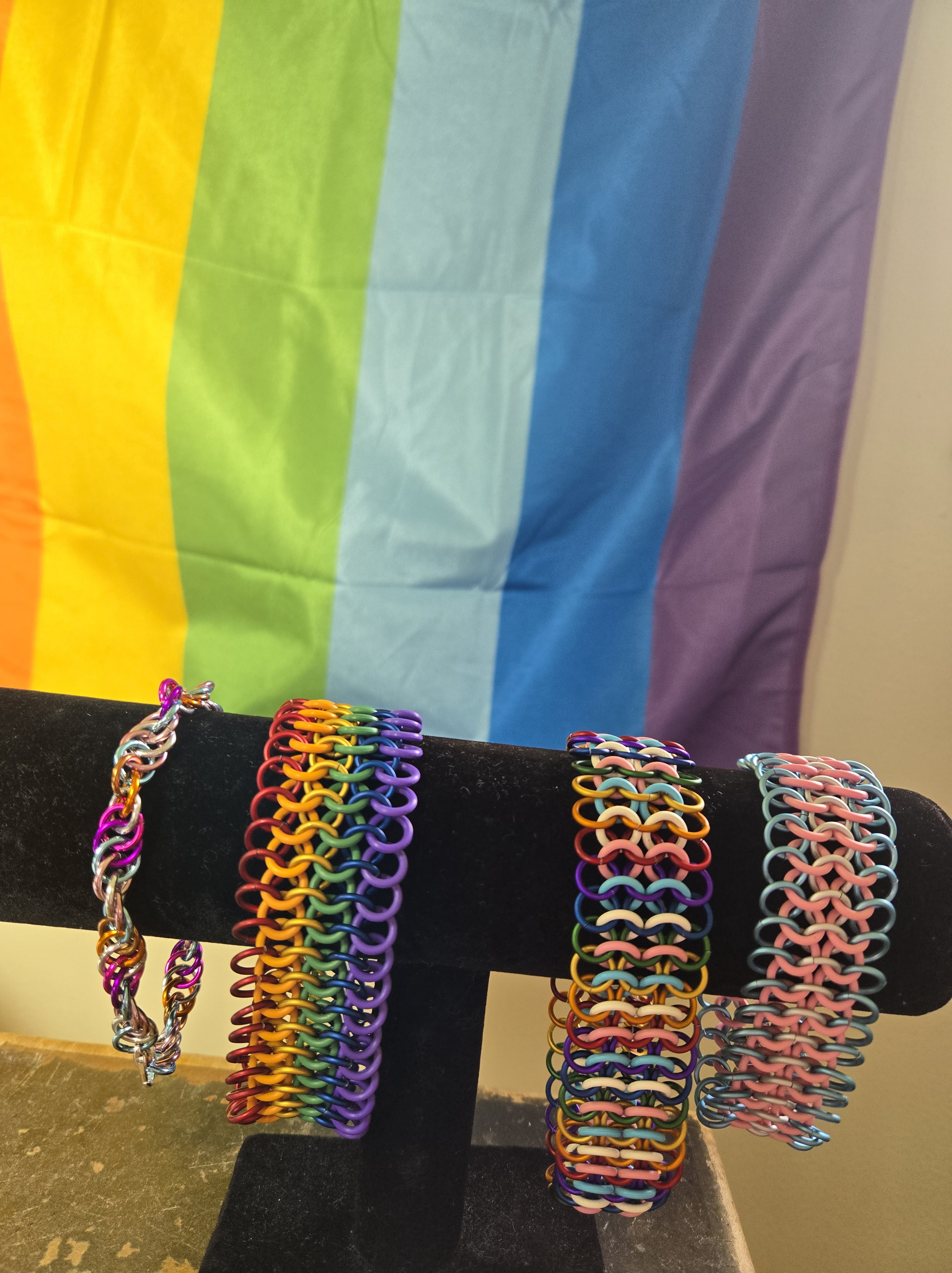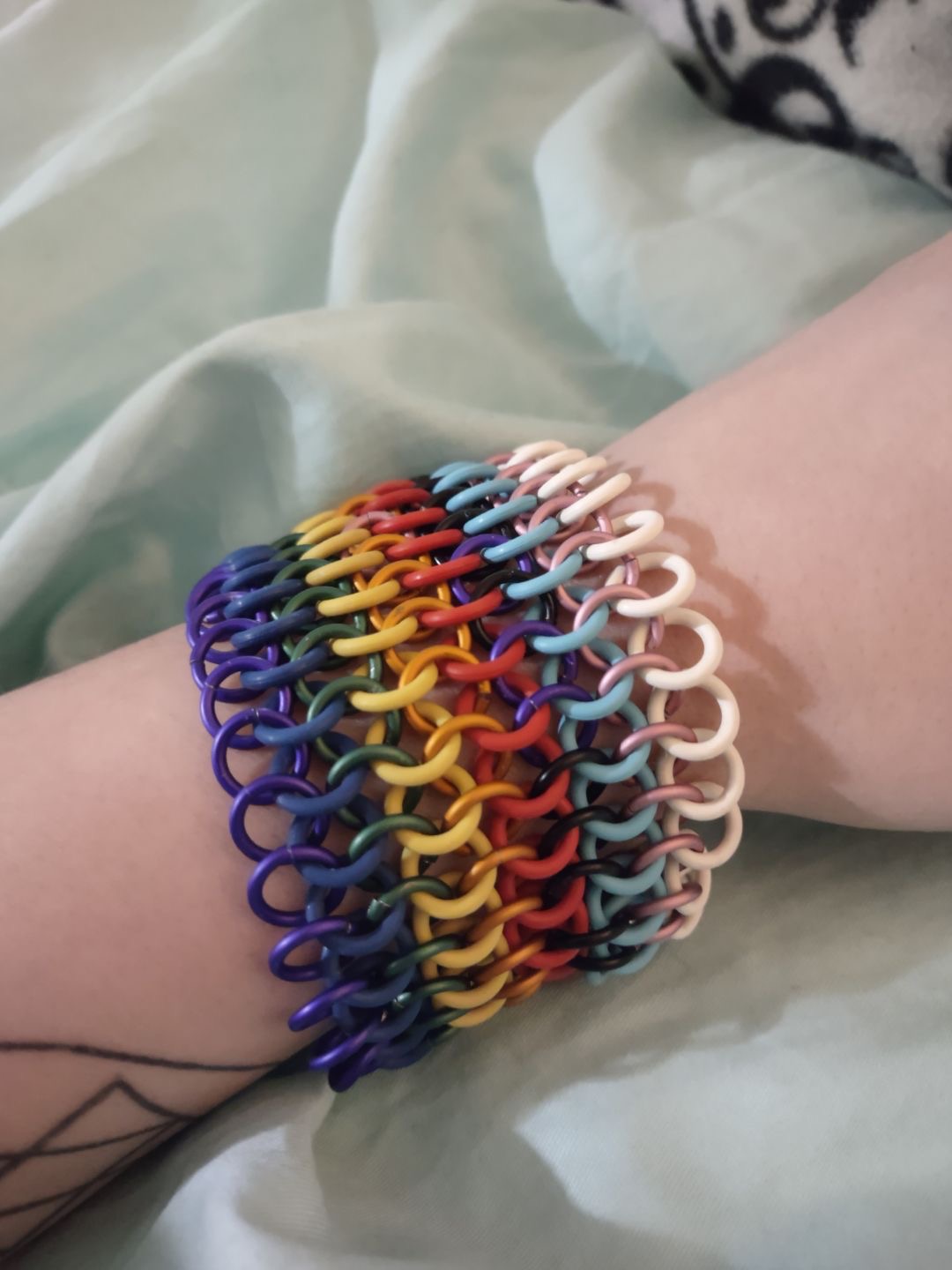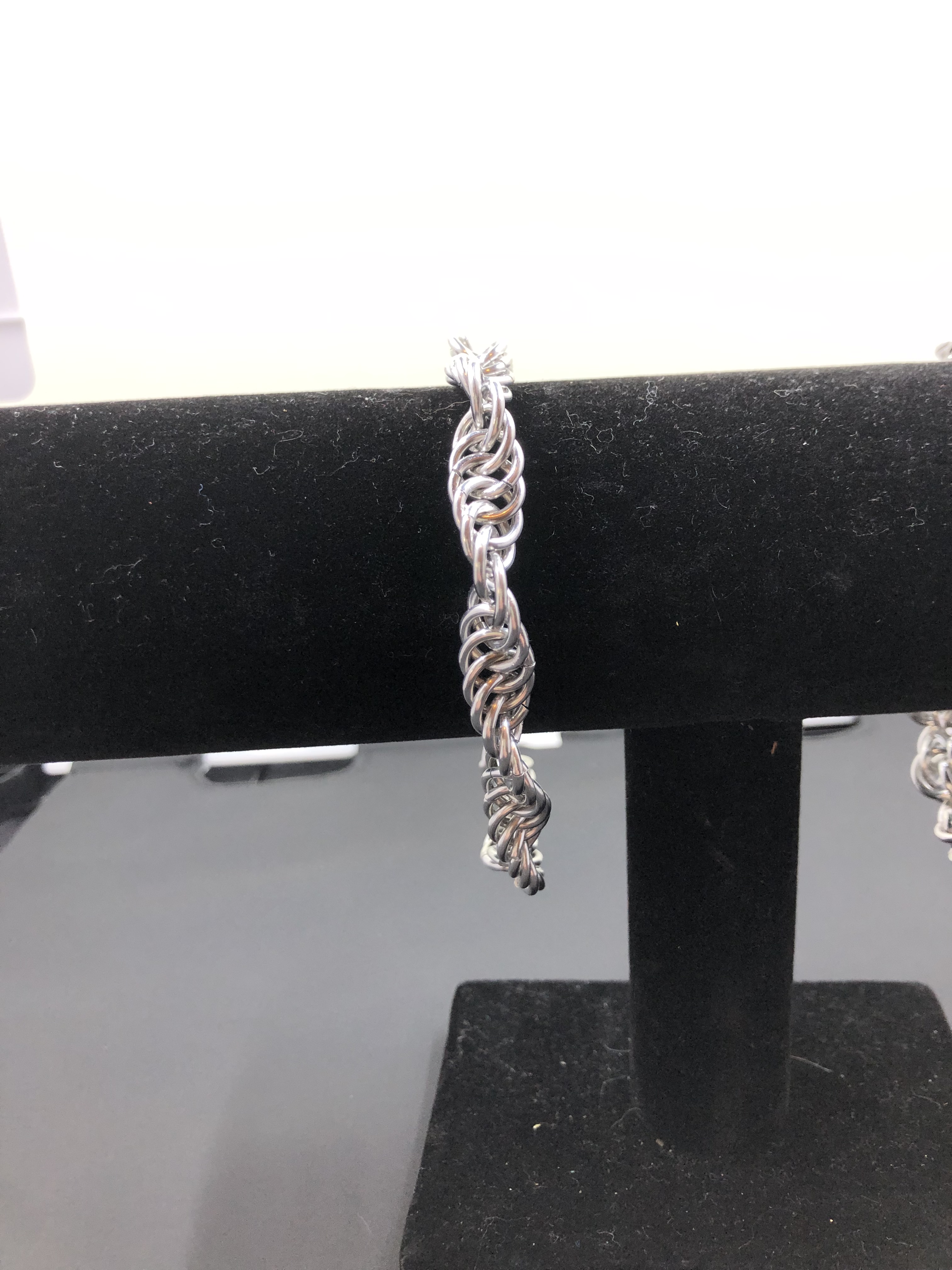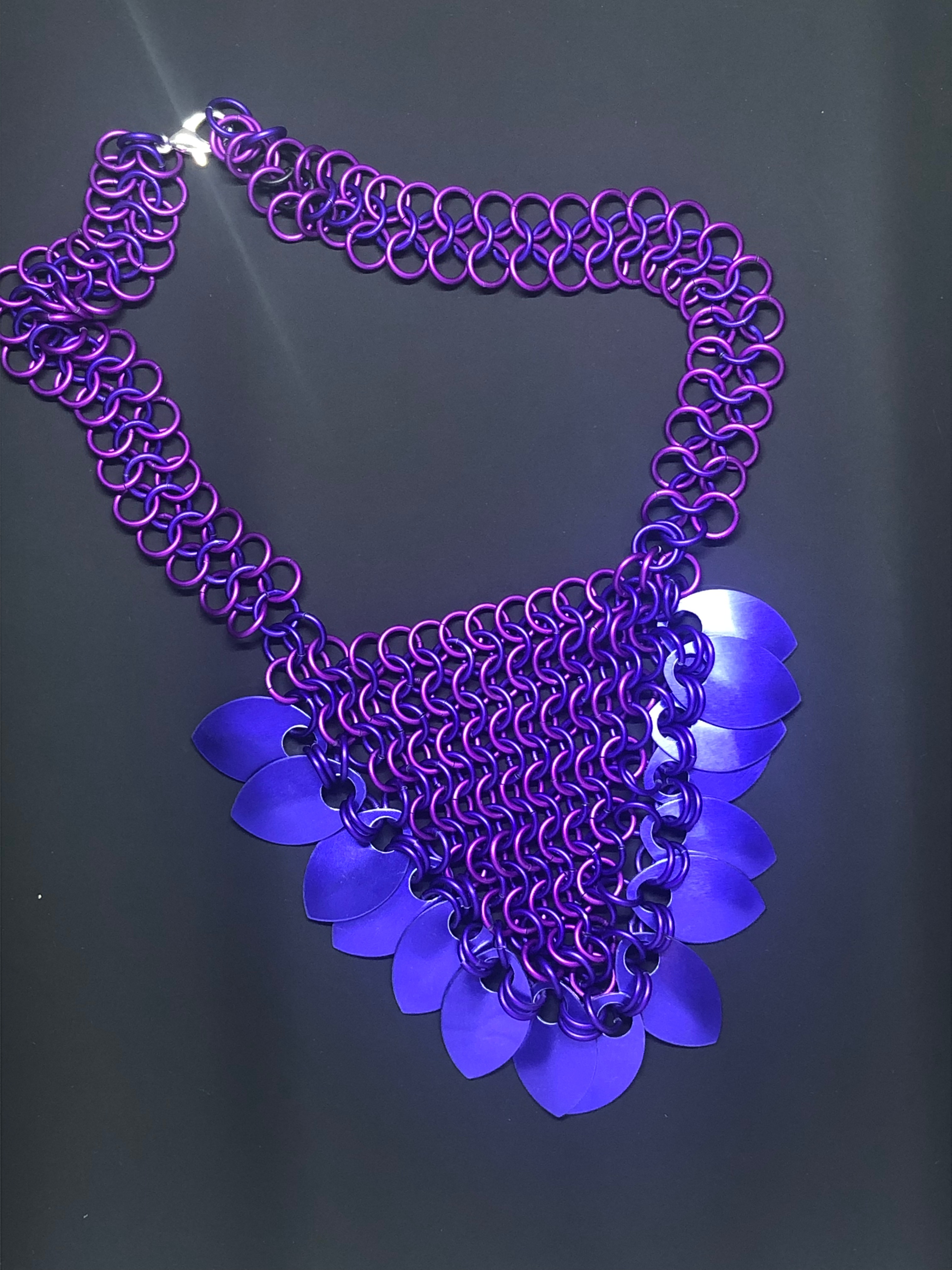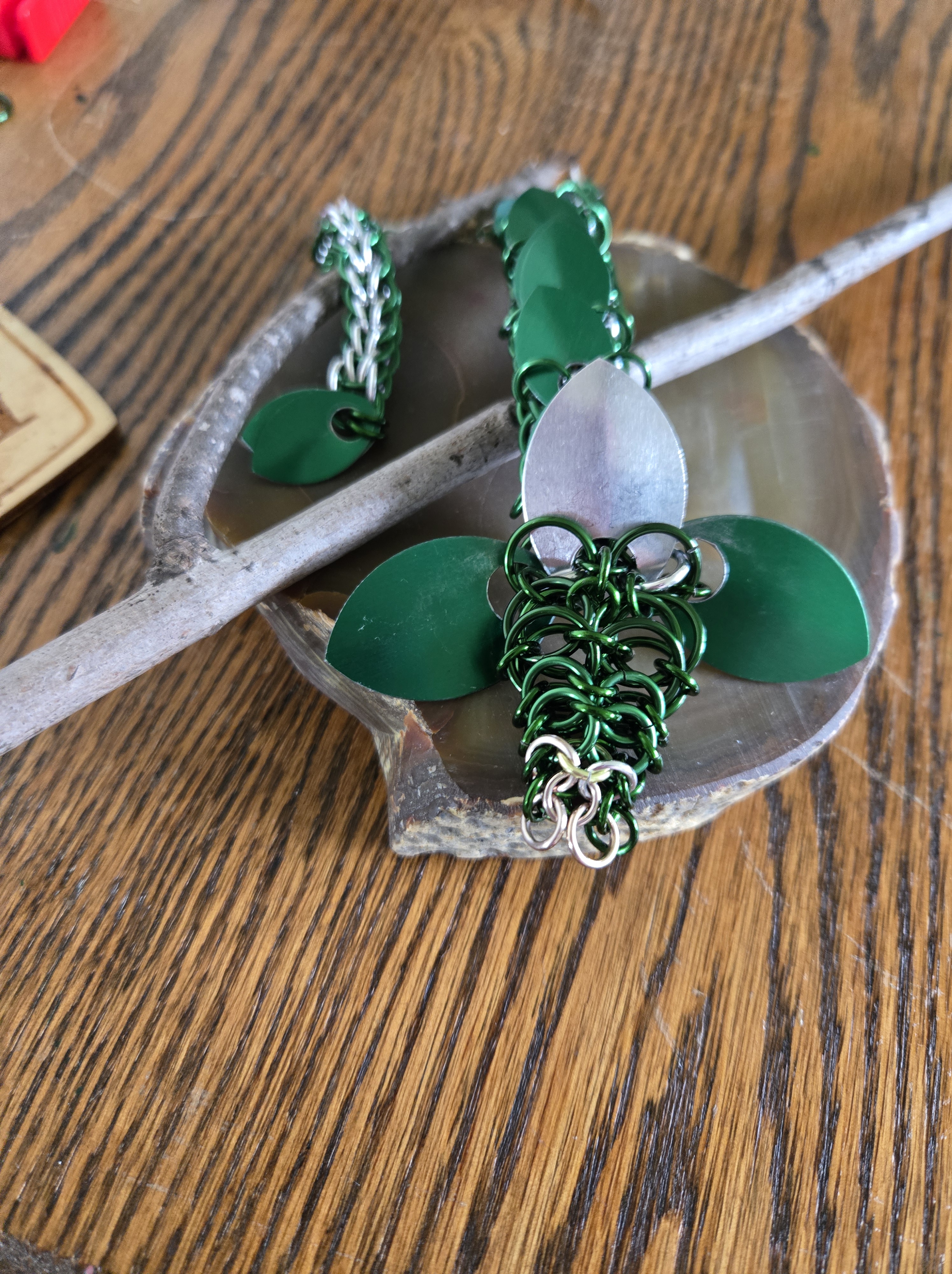 This is where Cham started. Her first piece was a chainmaille shirt. While bigger pieces are not for sale, smaller pieces such as pauldrons and bracers are available. Contact Cham for more info!